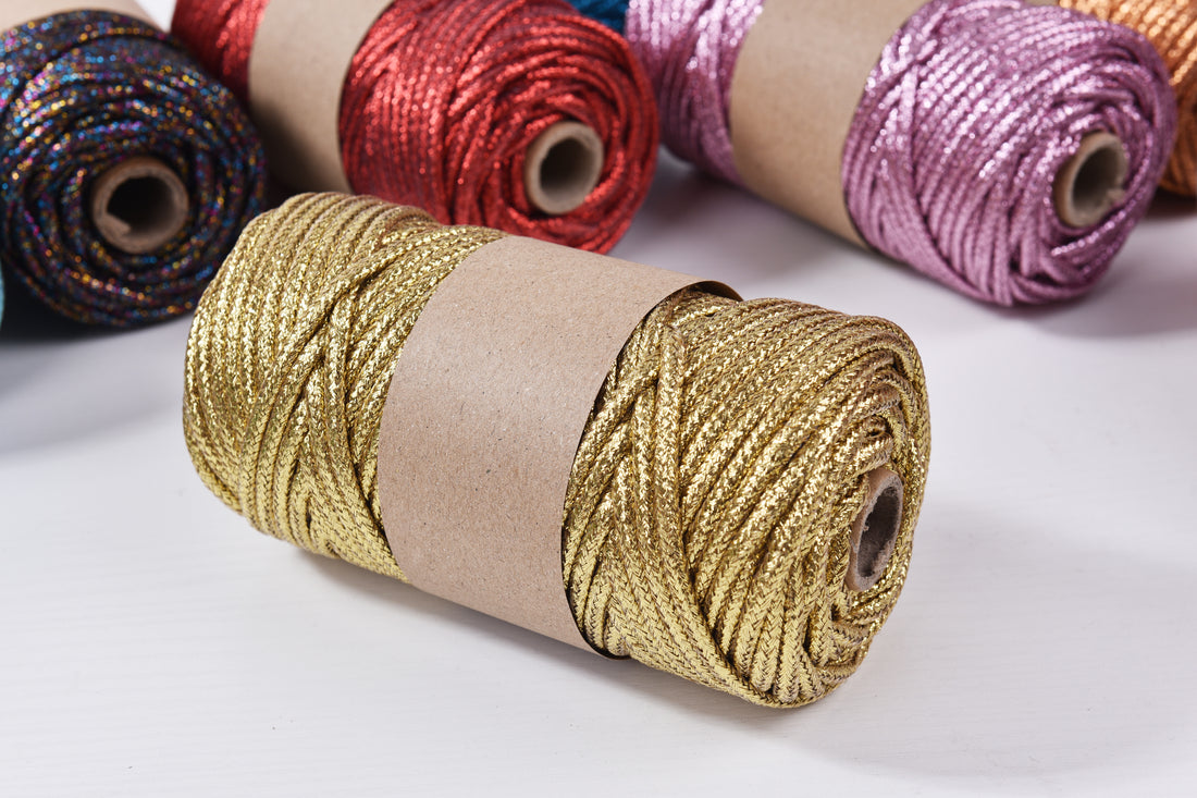 Thick Shiny cord 5mm Metallic Braid Rope 50yards Glittered Macrame Rope Gold color rope