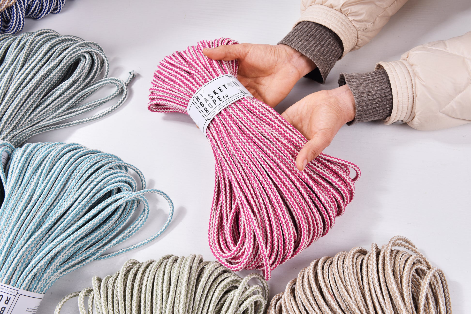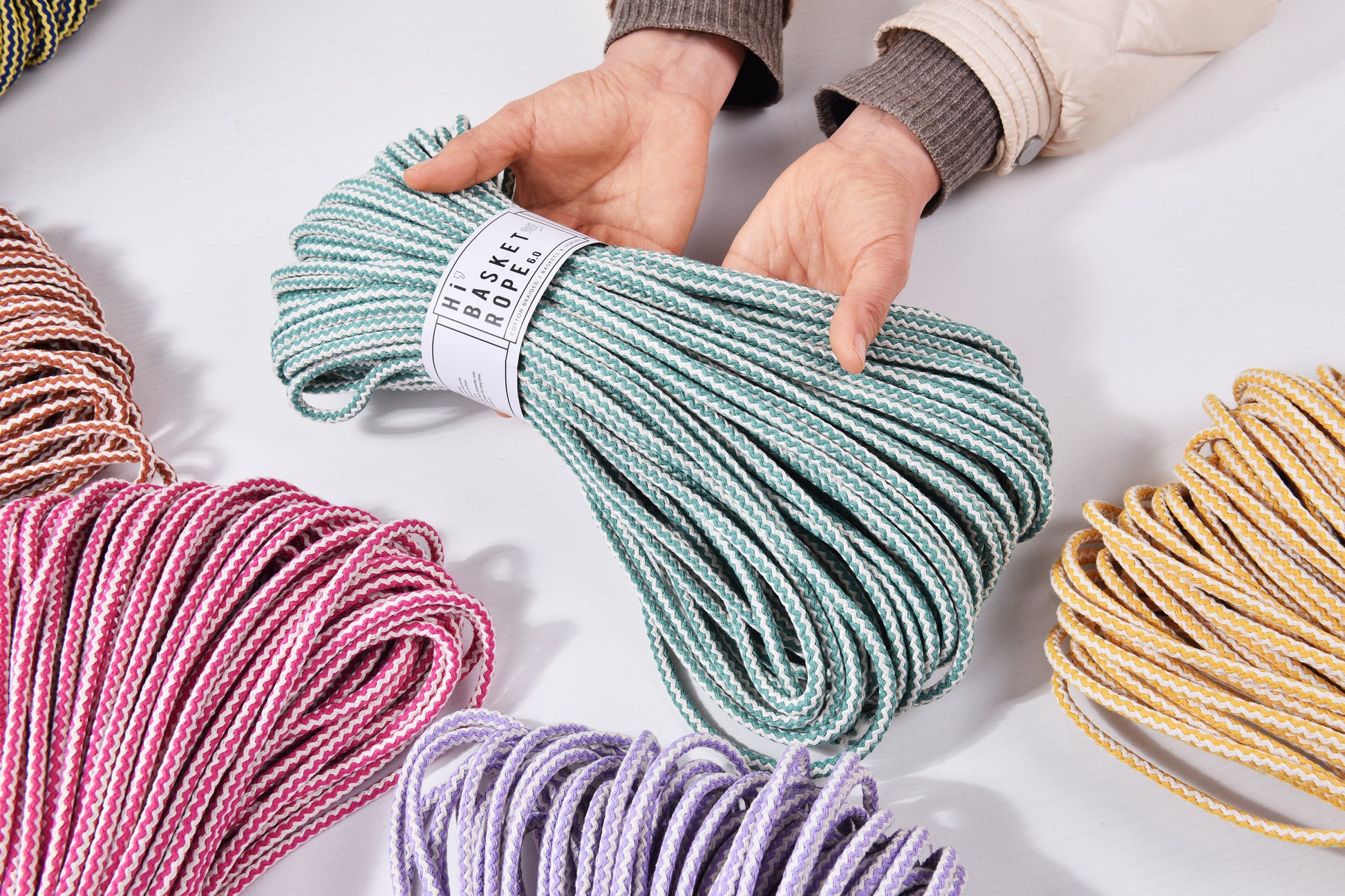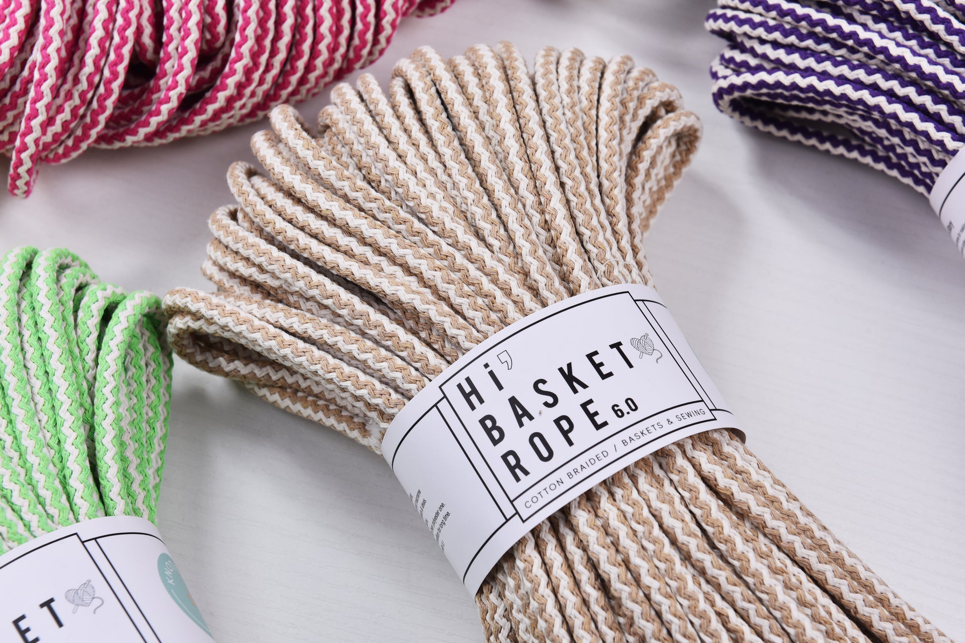 Double colored 5.5mm x 50meters Basket Making Rope Cotton Braid Rope Zigzag patterned Hand Sewing & Macrame knot works